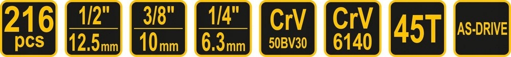 НАБІР ІНСТРУМЕНТІВ КЛЮЧІВ ТОРЦЕВІ 216 ELEMENTS XXL CASE VOREL Кількість елементів у наборі 216