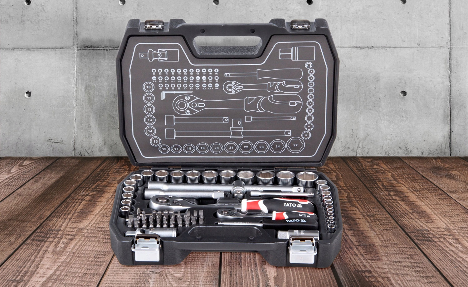 Набір YATO YT-38782 дозволяє виконувати роботи, що вимагають дуже високих навантажень і точності , а також дозволяє виконувати багато сервісних робіт, пов'язаних з відкручуванням і загвинчуванням різьбових з'єднань різних номінальних розмірів.