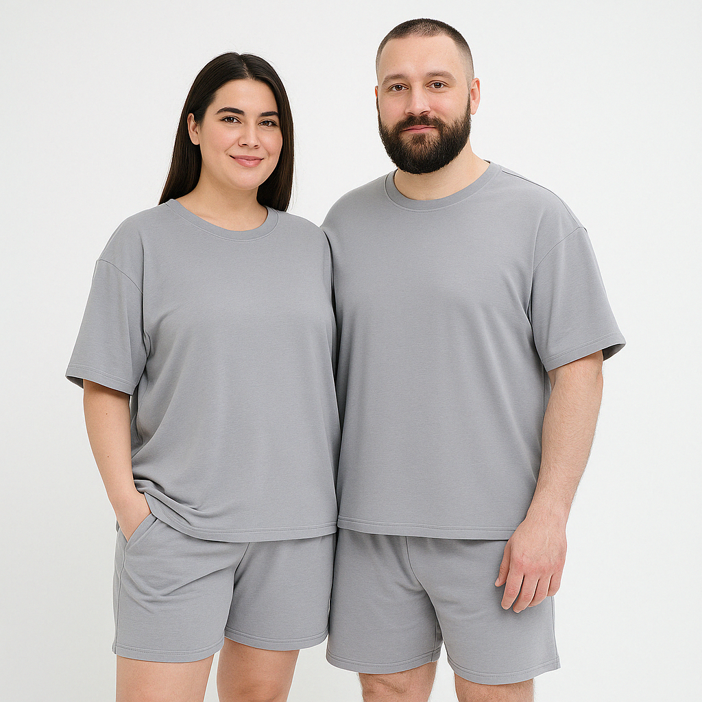 Костюм унісекс 4XL RELAX: футболка та шорти великих розмірів Костюм спортивний світло-сирий 3XL-7XL