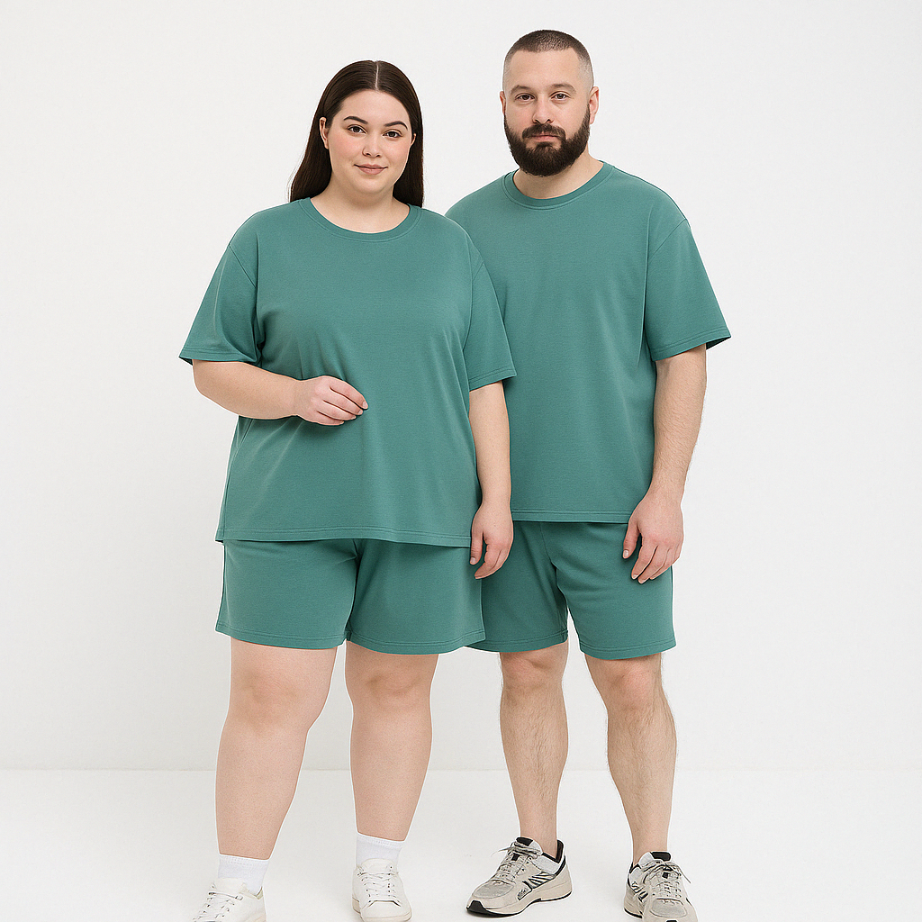 Костюм унісекс 7XL футболка та шорти великих розмірів Костюм спортивний зелений 3XL-7XL