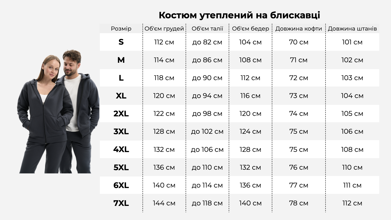 Розміри: від S до 7XL (у тому числі plus size).